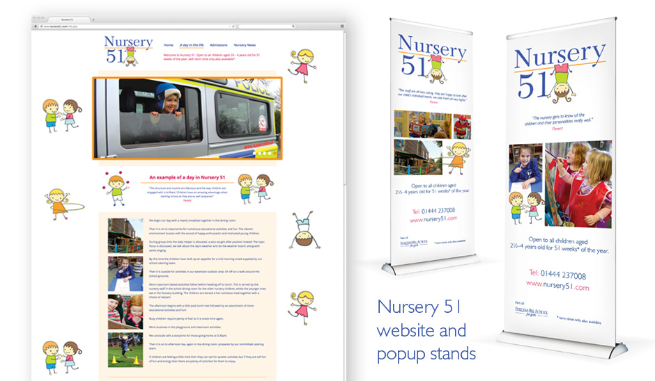 The fun, cute branding appeals to parents of boys as well as girls and portrays the message of lively, active children. From here, we designed and built the website, created and printed a mini prospectus and stationery as well as other promotional material.