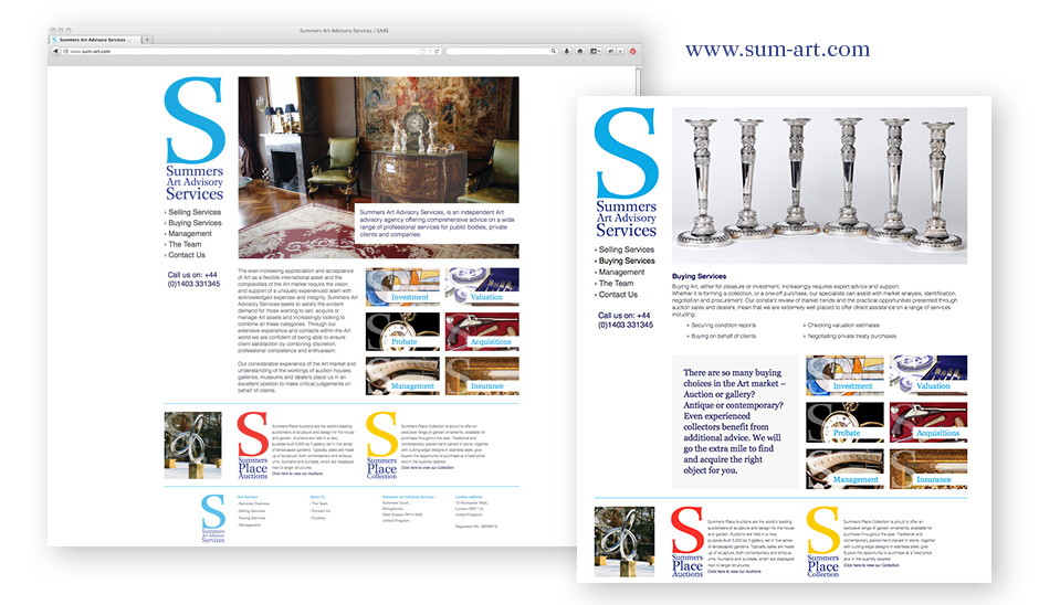 This latest brief was for exciting new branding to represent Summers Art Advisory Services in a fresh, contemporary style which would appeal to a wide market. We designed the new branding, website, business cards and stationery.